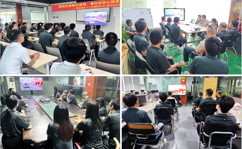 9月3日,紀念中國人民抗日戰爭暨世界反法西斯戰爭勝利80周年大會在北京天安門廣場隆重舉行。徐州松谷激光產業園的全體員工齊聚在會議室、生產車間、辦公室、餐廳等場地,莊重端坐,神情專注,共同觀看大會全程直播,認真聆聽和學習大會講話精神,向偉大勝利致敬,汲取奮發前行的強大力量。
